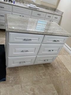 There is a large island in the middle of the kitchen